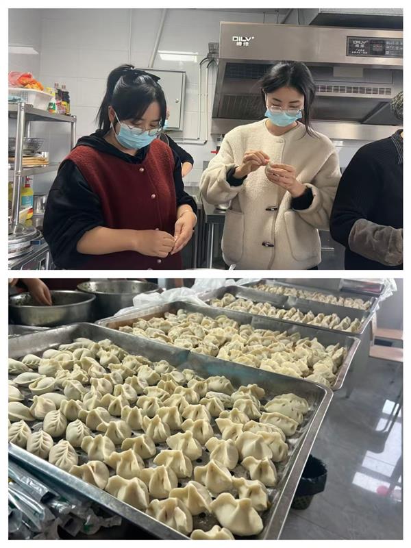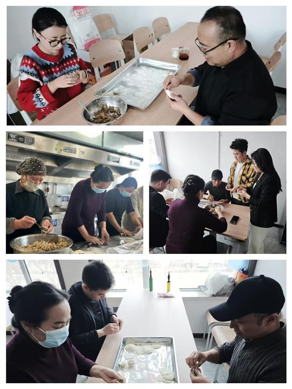 集團(tuán)領(lǐng)導(dǎo)班子成員也一同加入到包餃子的行列中,一邊包餃子一邊與年輕員工分享冬至習(xí)俗:“冬至不端餃子碗,凍掉耳朵沒人管。今天咱們多包點(diǎn),讓每個(gè)人都吃得暖暖和和!”